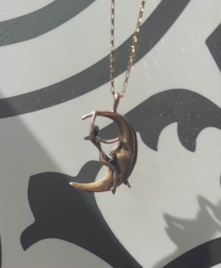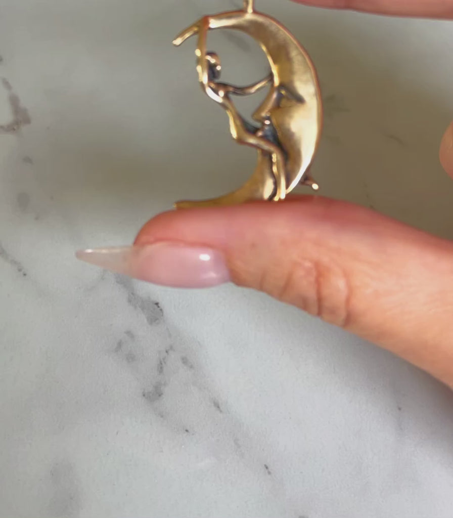 Designer Gold Figural Moon Rider Handmade Erotica Art Pendant