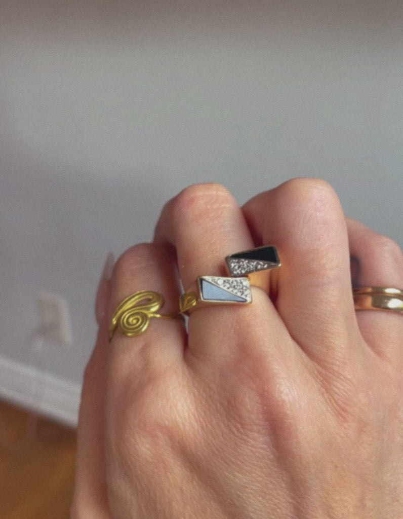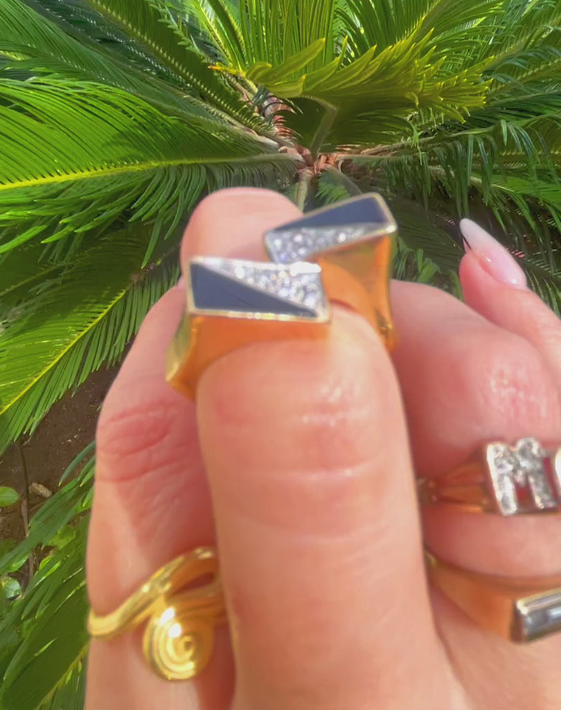 Gorgeous Vintage Gold Onyx Geometric Diamond Ring Bold Silhouette 90's Retro